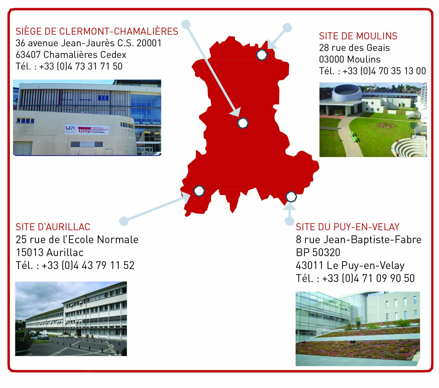 Il est possible de réserver une salle sur les quatre sites de l'INSPÉ (Aurillac, Chamalières, Moulins, Le Puy en Velay).