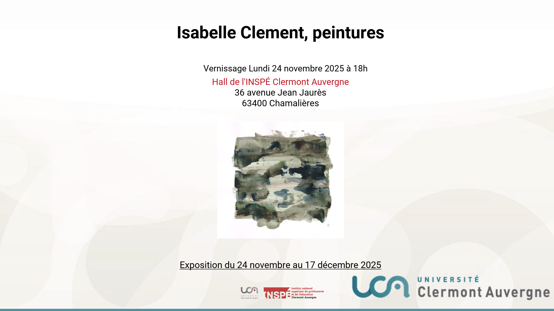Exposition Isabelle Clement, Peintures, INSPÉ Chamalières du lundi 24 novembre au 17 décembre 2025